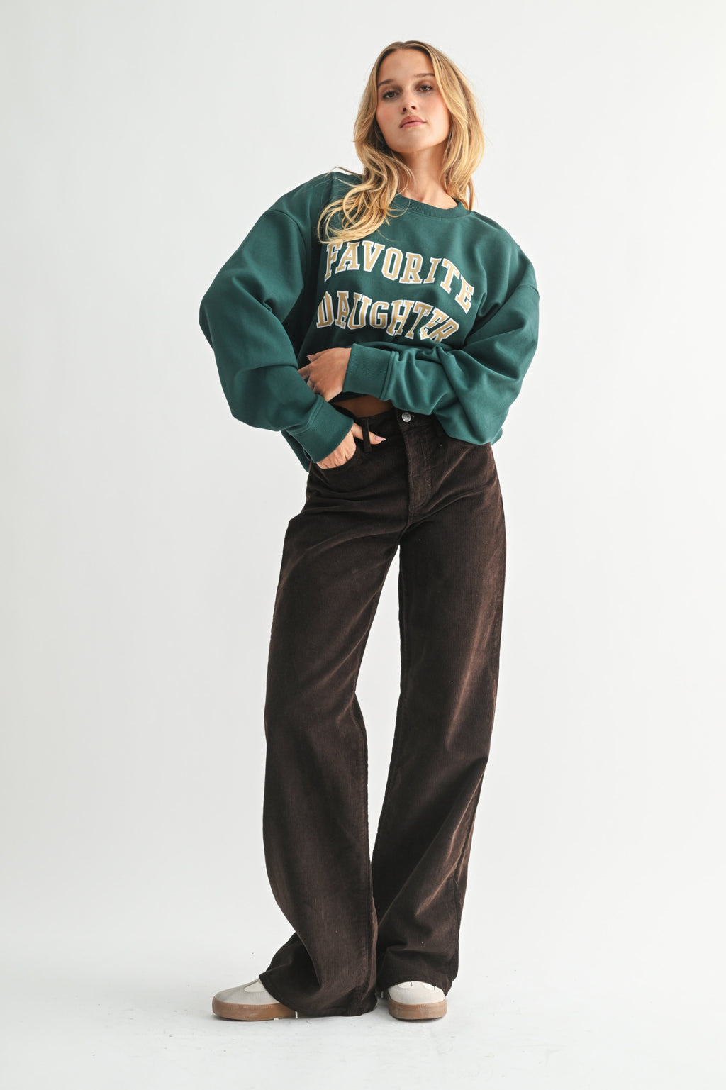 Mattie Wide Leg Corduroy Denim in Chocolate