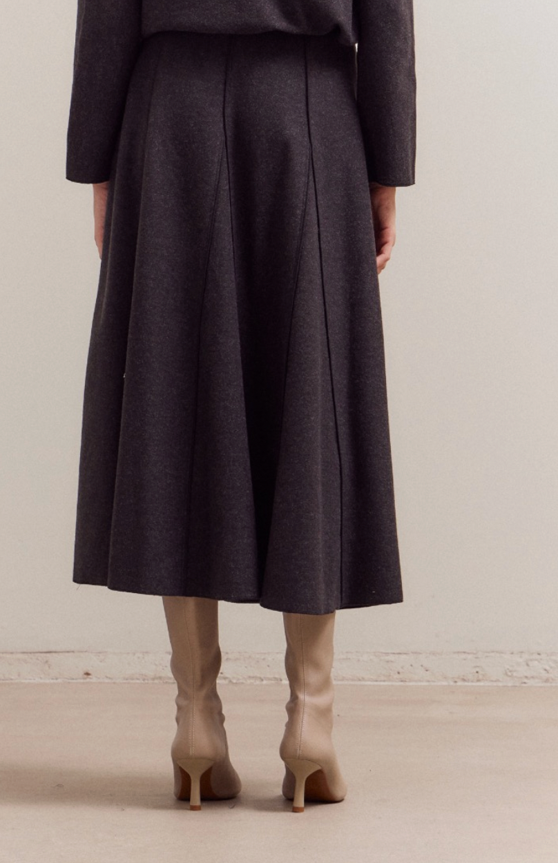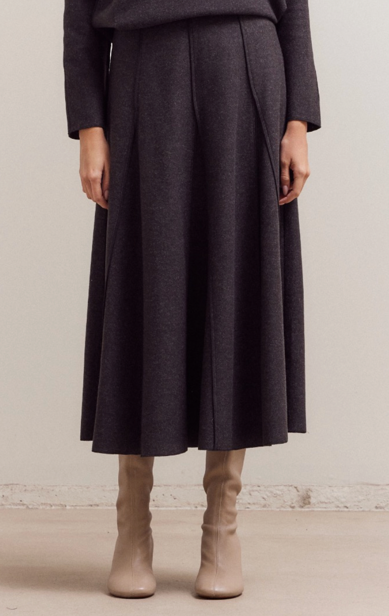 Todd Pleated Midi Skirt in Charcoal