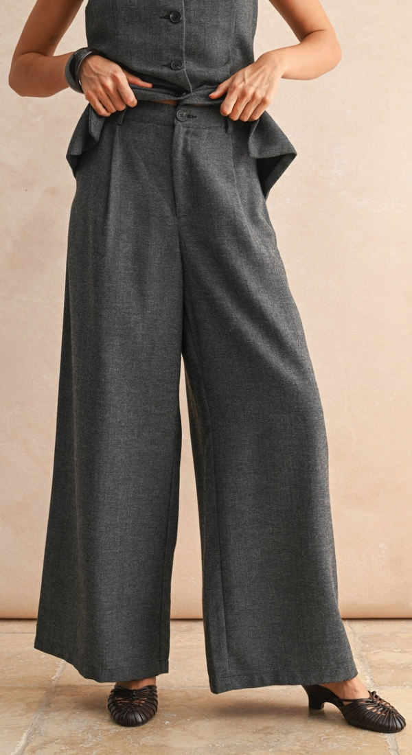 Jackson Herringbone Wide Leg Trousers in Black and Cream