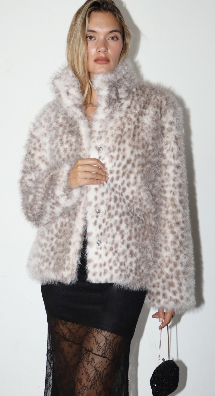 Anita Spotted Faux Fur Jacket in Cream- FINAL SALE