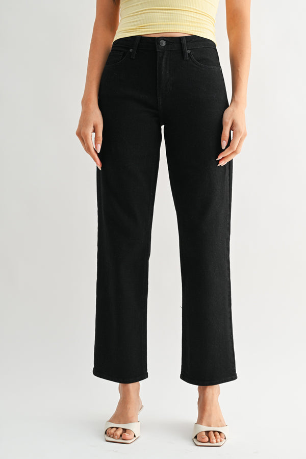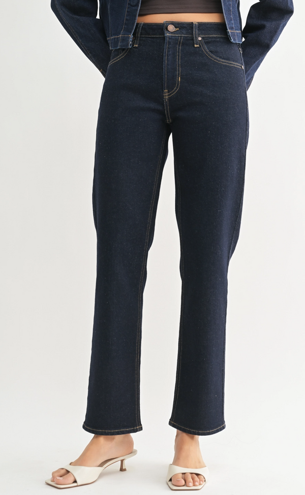 Piper Mid Rise Straight Leg Denim in Super Dark Wash