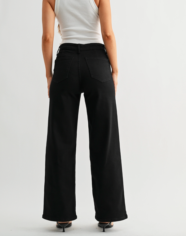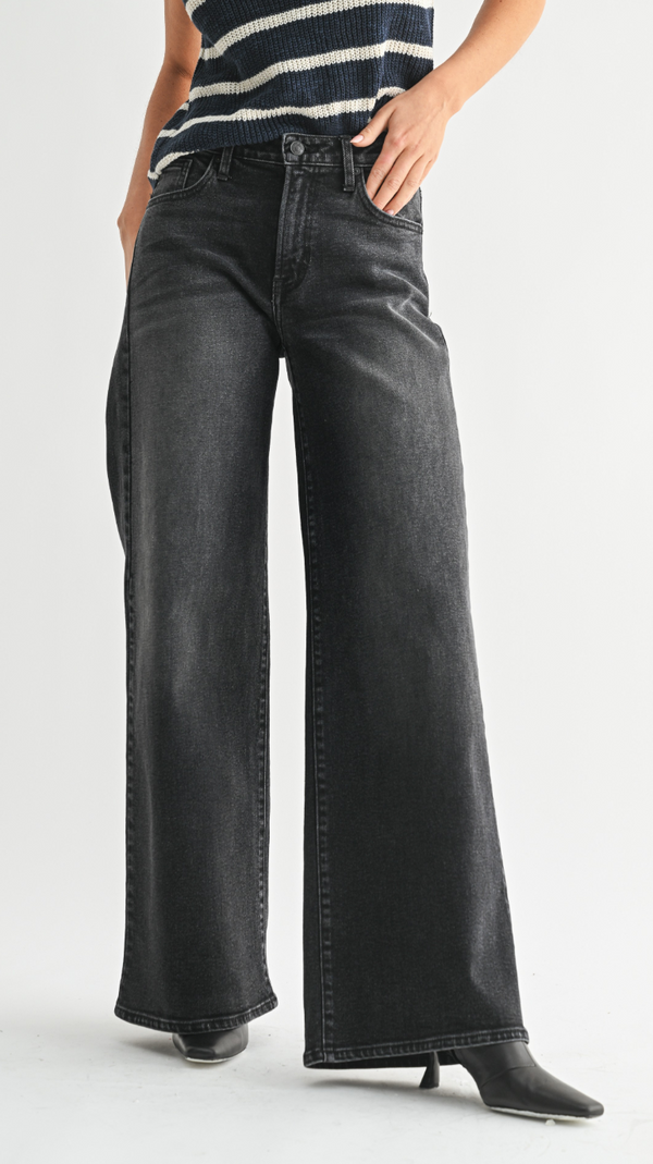Finn Scissor Cut Wide Leg Denim in Washed Black