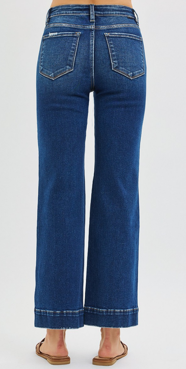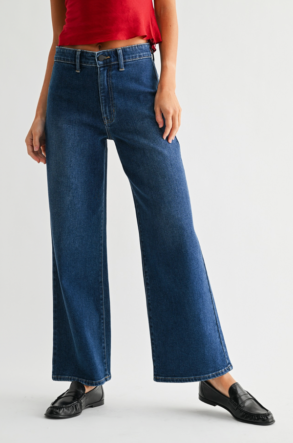 Mona Wide Leg Cropped Super Soft Denim in Dark Wash- FINAL SALE