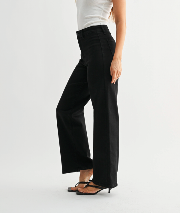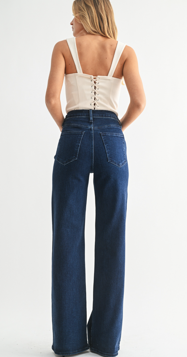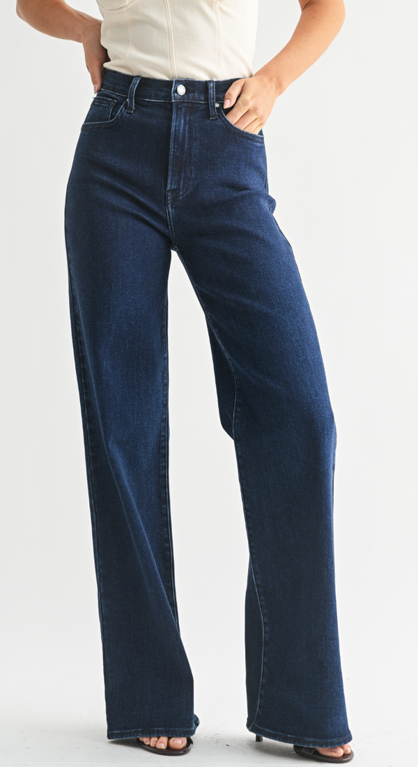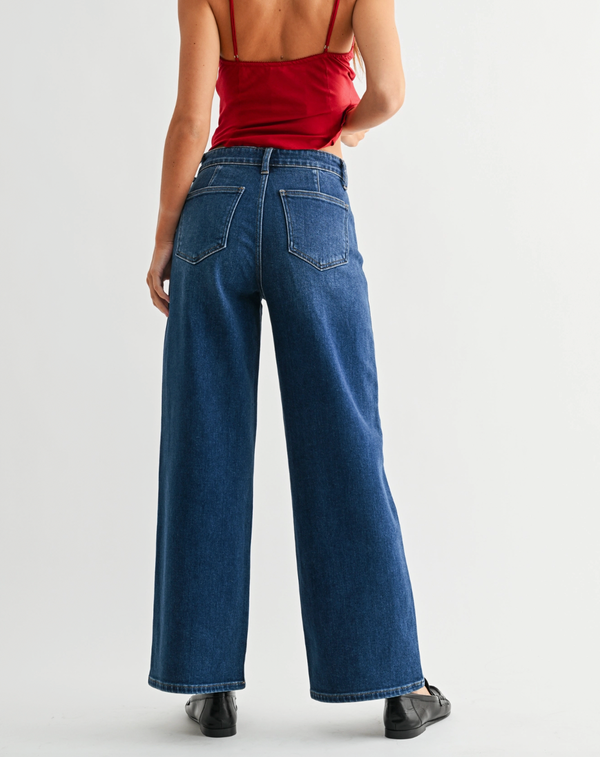 Michelle Relaxed Wide Leg Denim in Super Dark Wash