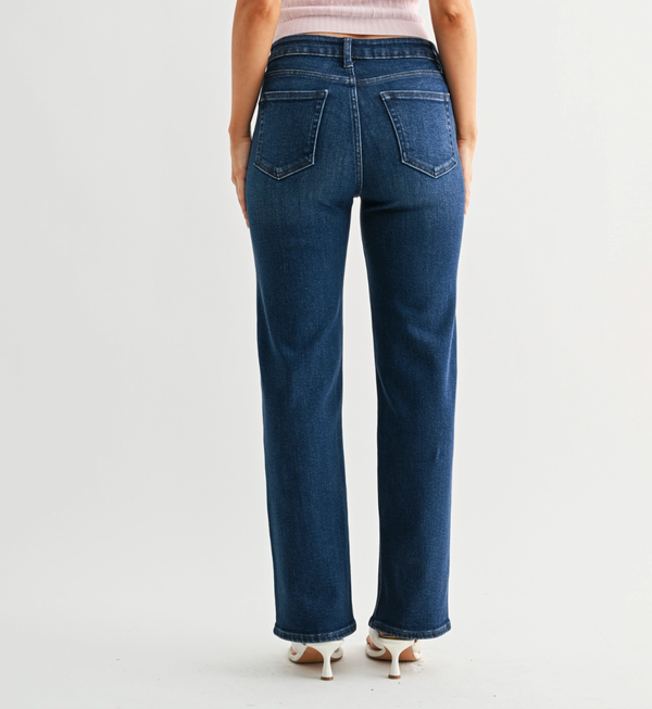 Piper Mid Rise Straight Leg Denim in Dark Wash
