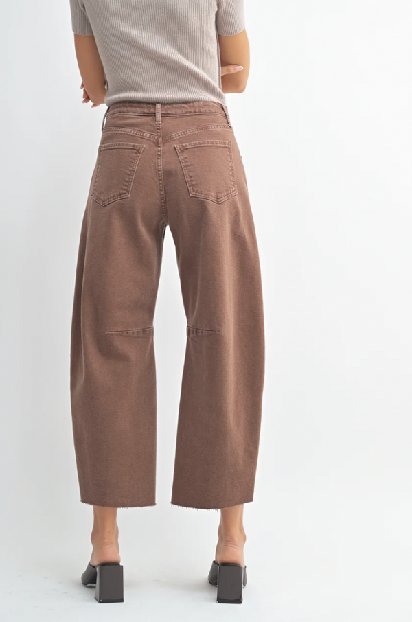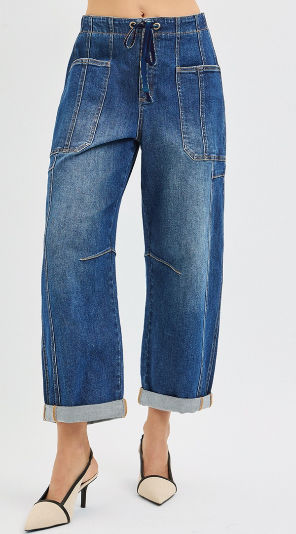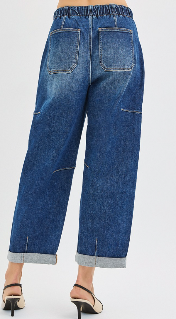 Trish High Rise Cropped Barrel Denim in Dark Wash
