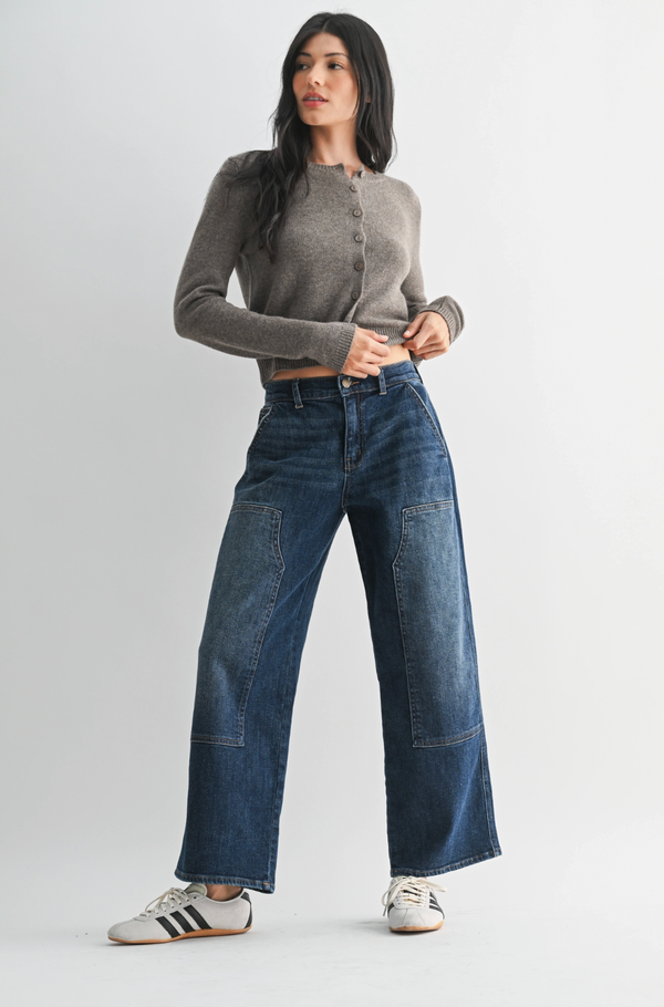 Lynne Patch Pocket Wide Leg Denim in Super Dark Wash