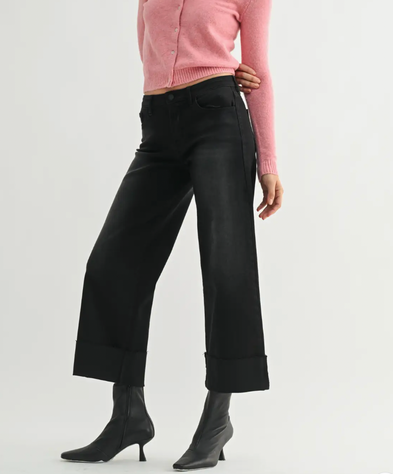 Frankie Cuffed Scissor Cut Denim in Washed Black