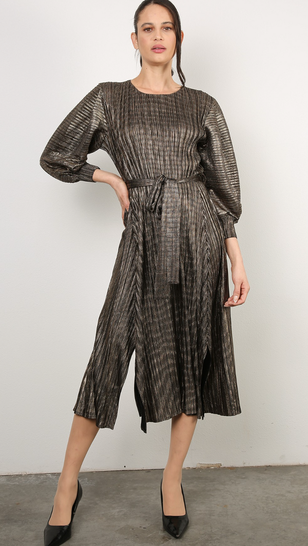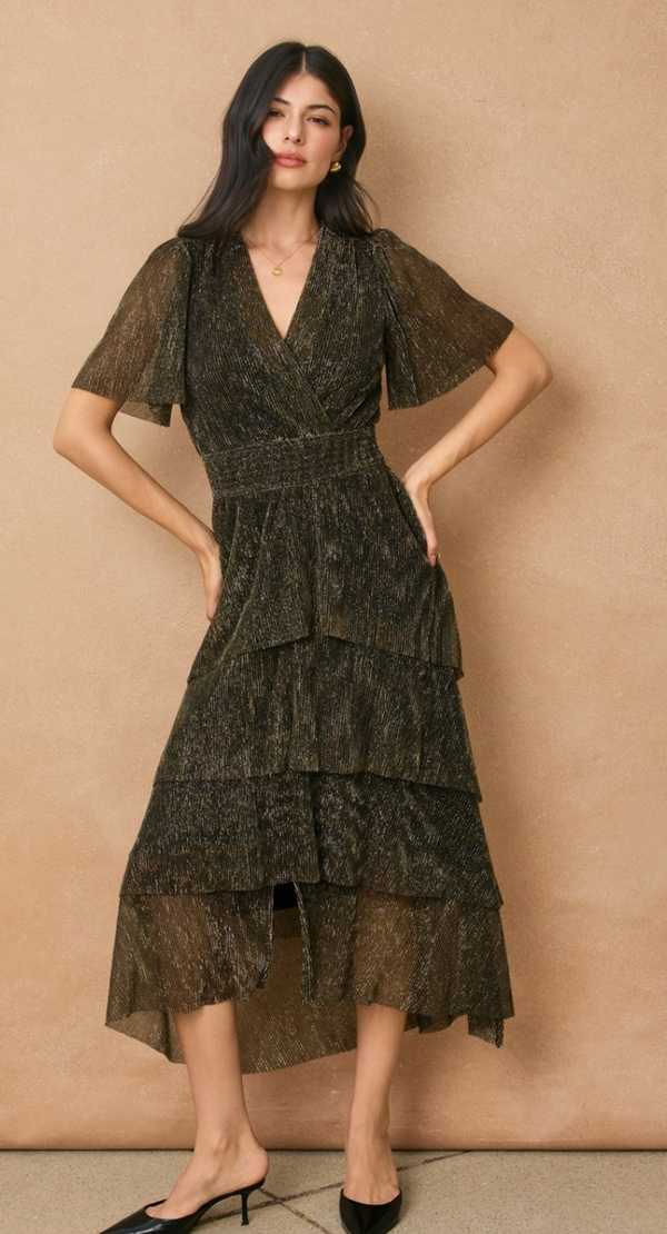 Julianna Metallic Midi Dress in Black and Gold