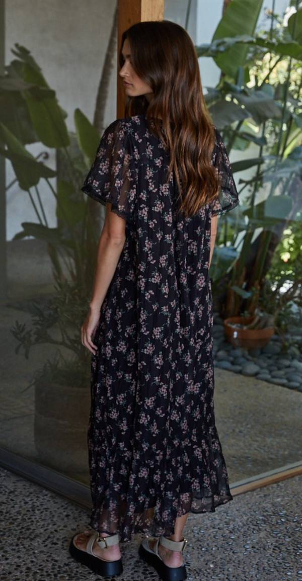 Esther Floral Midi Dress in Black- FINAL SALE
