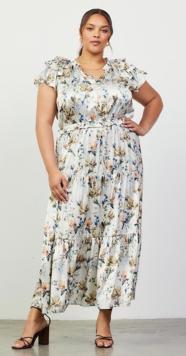 Fiona Floral Maxi Dress in Cream- FINAL SALE