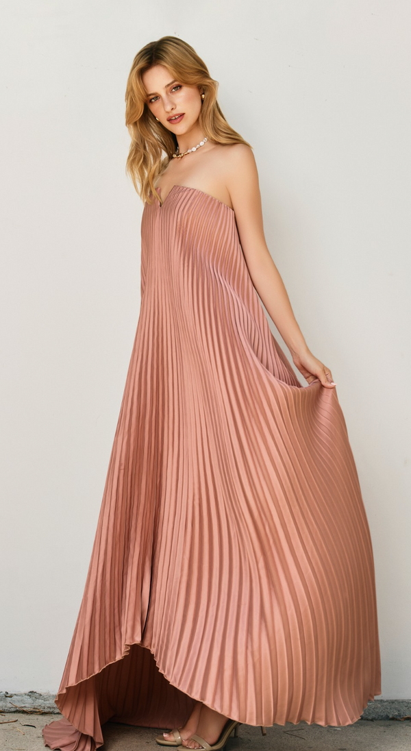 Isabelle Pleated Maxi Dress in Rose Gold