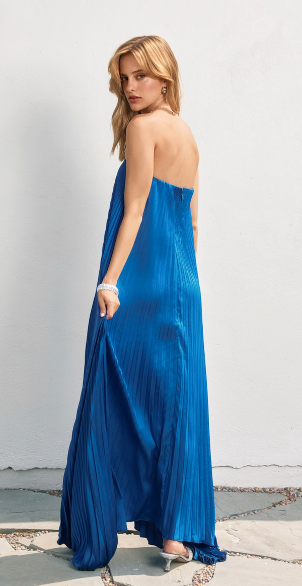Isabelle Pleated Maxi Dress in Blue
