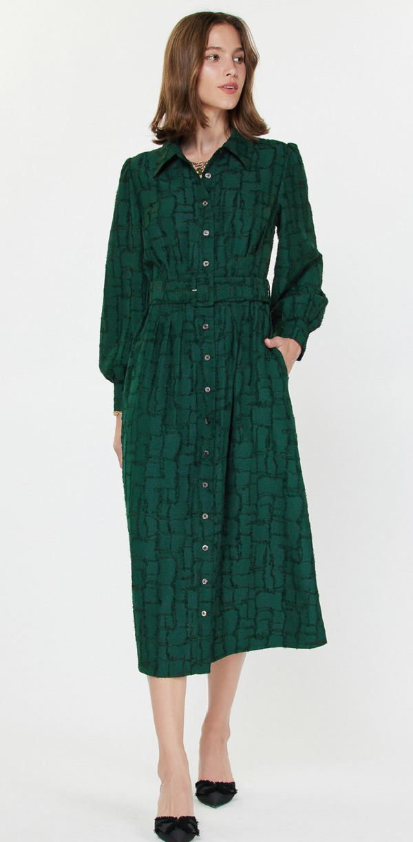Jeanette Button Up Midi Dress in Emerald Green