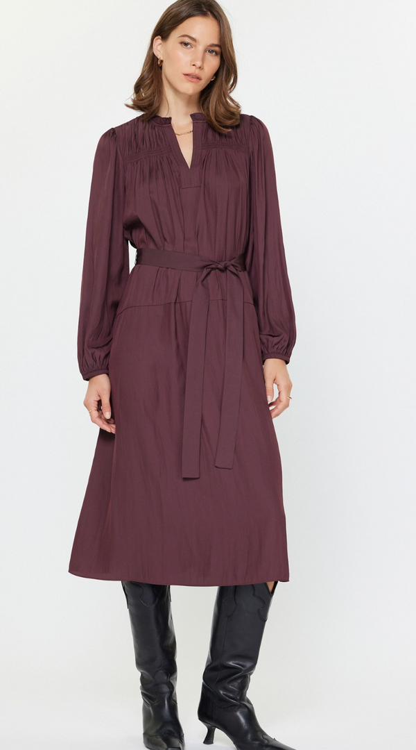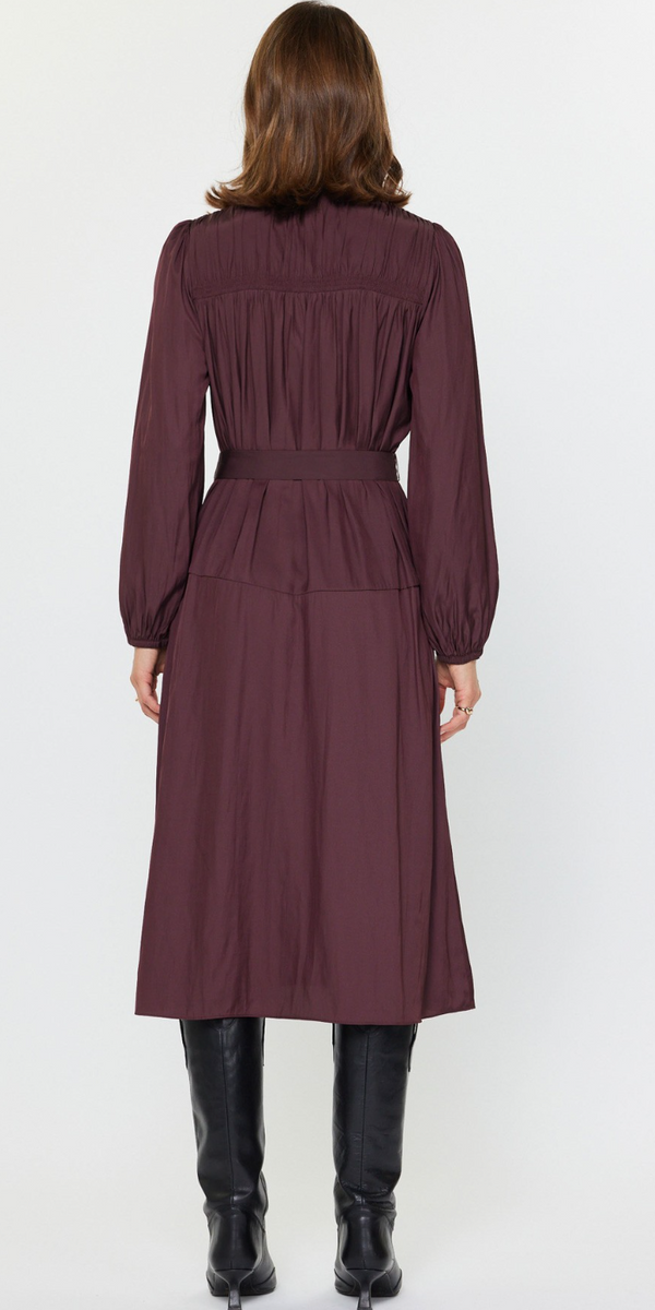 Mariam Long Sleeve Belted Midi Dress in Plum