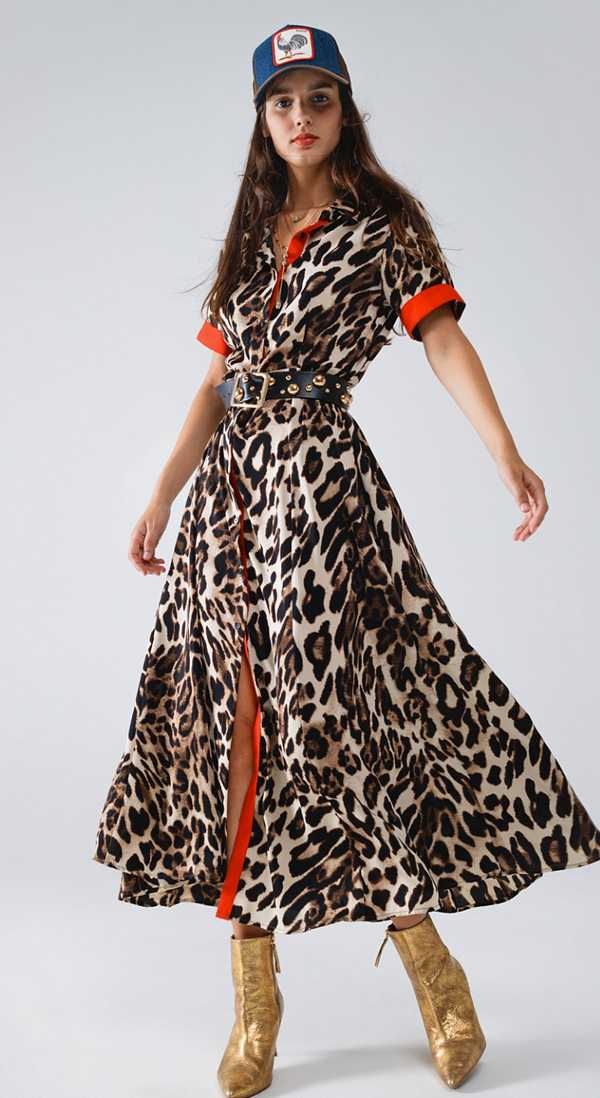 Monroe Leopard Print Midi Dress with Red Details- FINAL SALE
