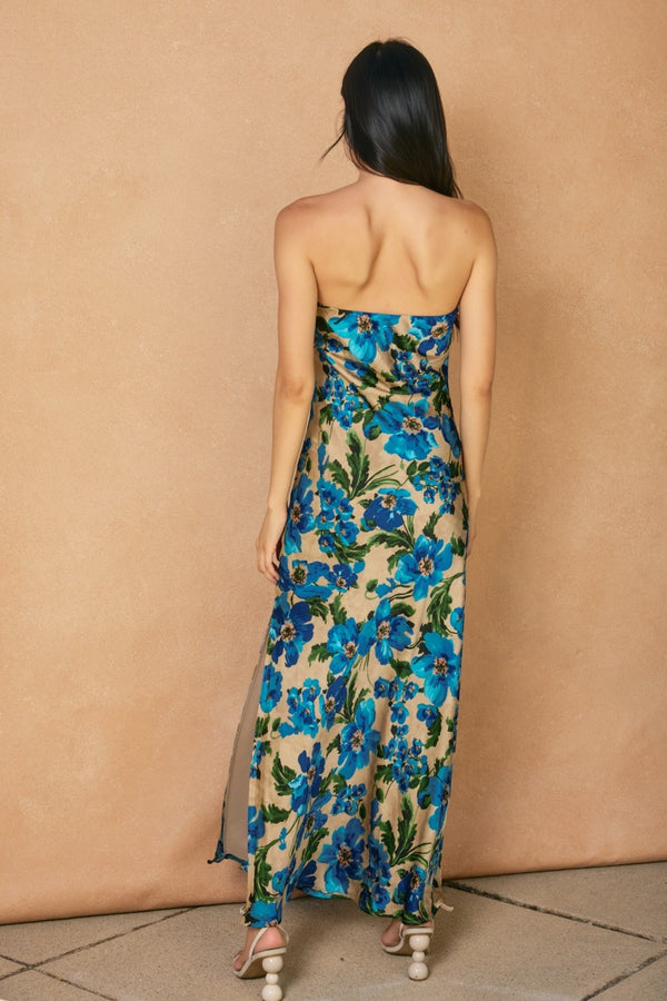 Giselle Strapless Printed Maxi Dress in Blue Jasper- FINAL SALE