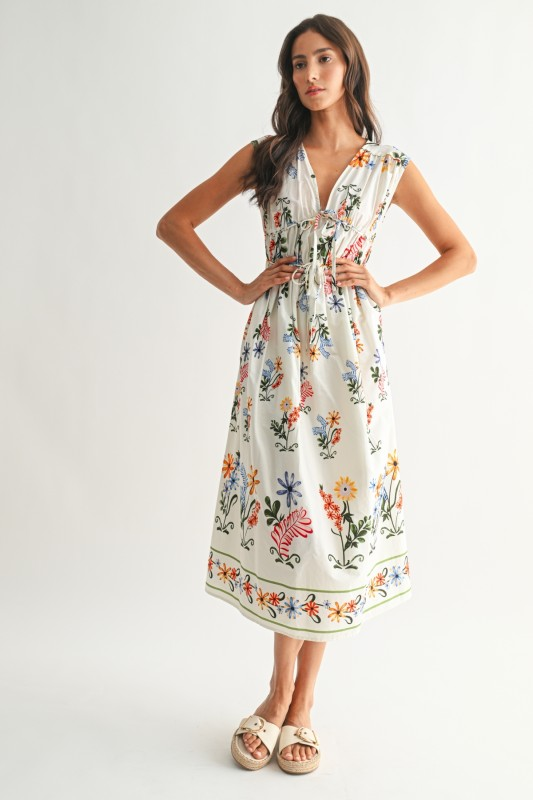 Petunia Floral Printed Midi Dress in Off White- FINAL SALE