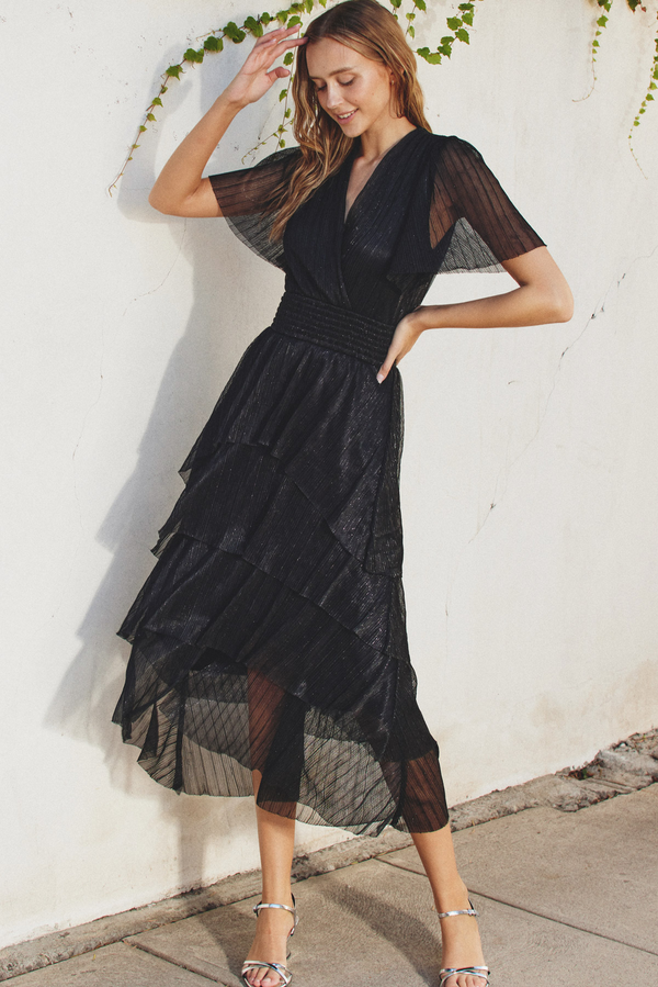 Audrey Metallic Midi Dress in Black