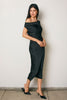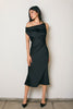 Cecily Off the Shoulder Ruched Midi Dress in Black