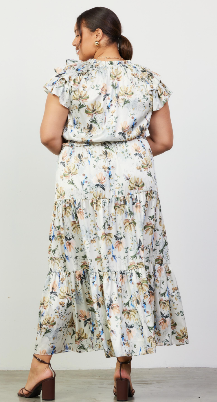 Fiona Floral Maxi Dress in Cream- FINAL SALE