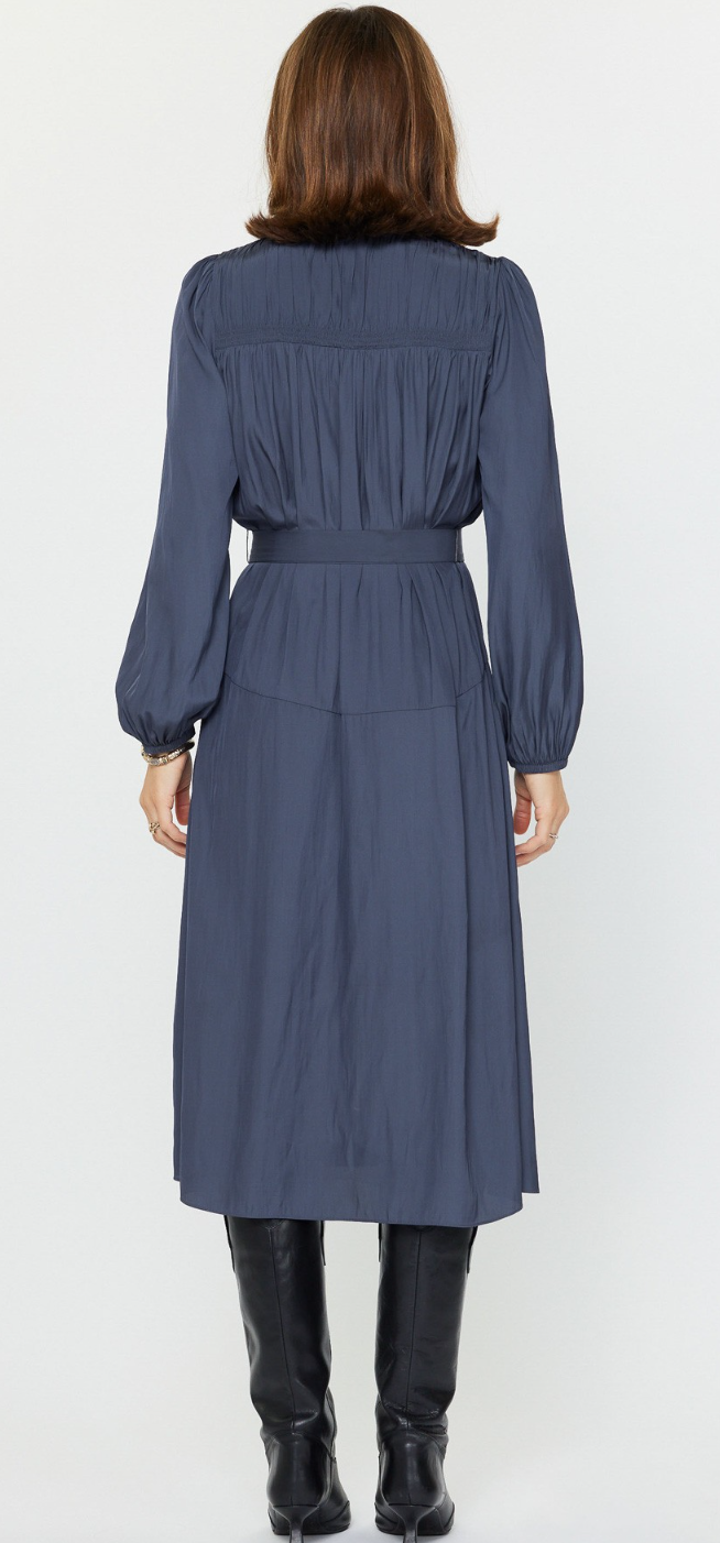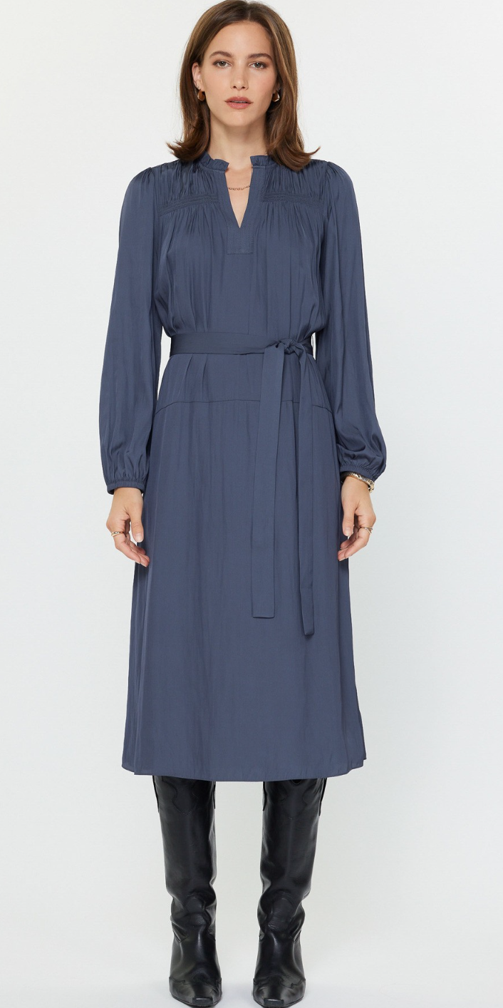 Mariam Long Sleeve Belted Midi Dress in Slate