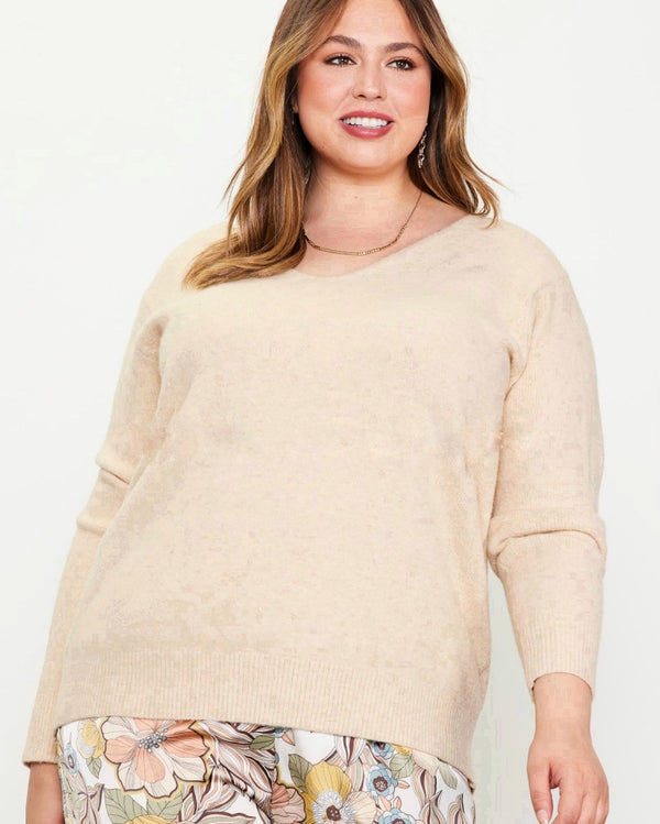 Layla Long Sleeve V Neck Sweater in Oatmeal