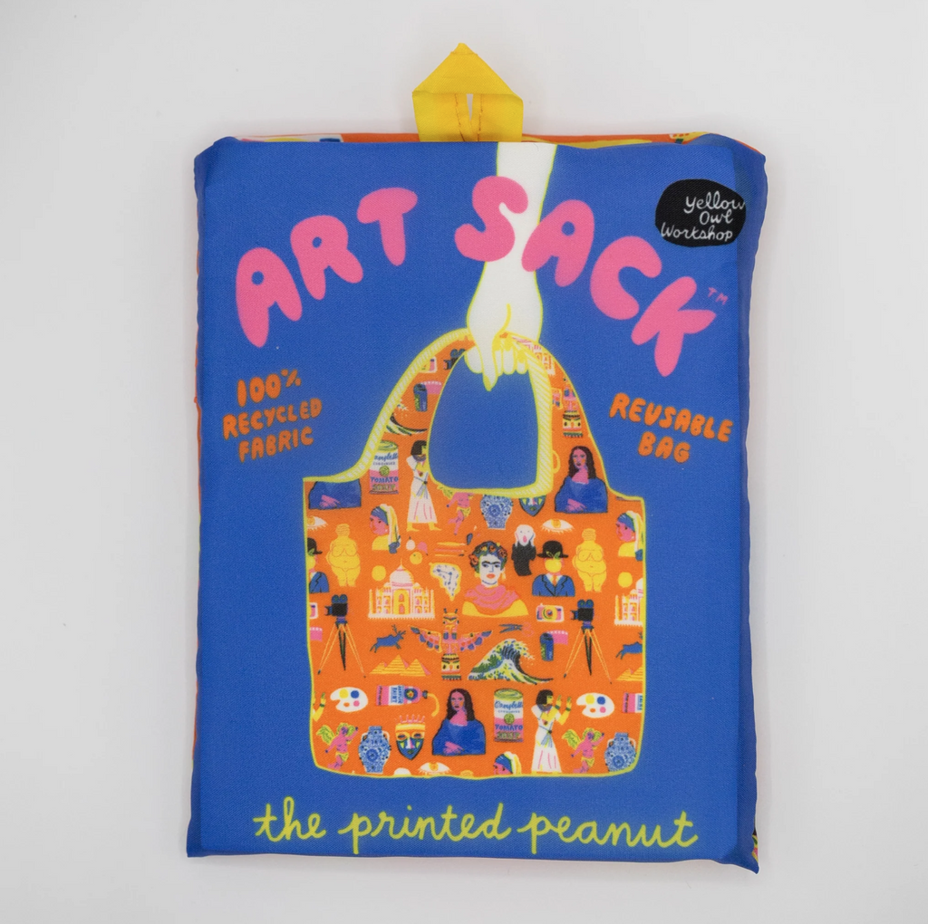 Support artists and hug a tree with our reusable Art Sacks®! These rad bags hold up to 50 lbs and fold into an interior pocket so you can grab and go.