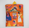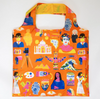 The Printed Peanut is the studio of Louise Lockhart from Yorkshire, UK. Her playful and nostalgic cut-paper illustrations are inspired by folk art, print ephemera, and vintage textiles. Here, iconic people, subjects, and works of art history colorfully pop on a bright orange bag.