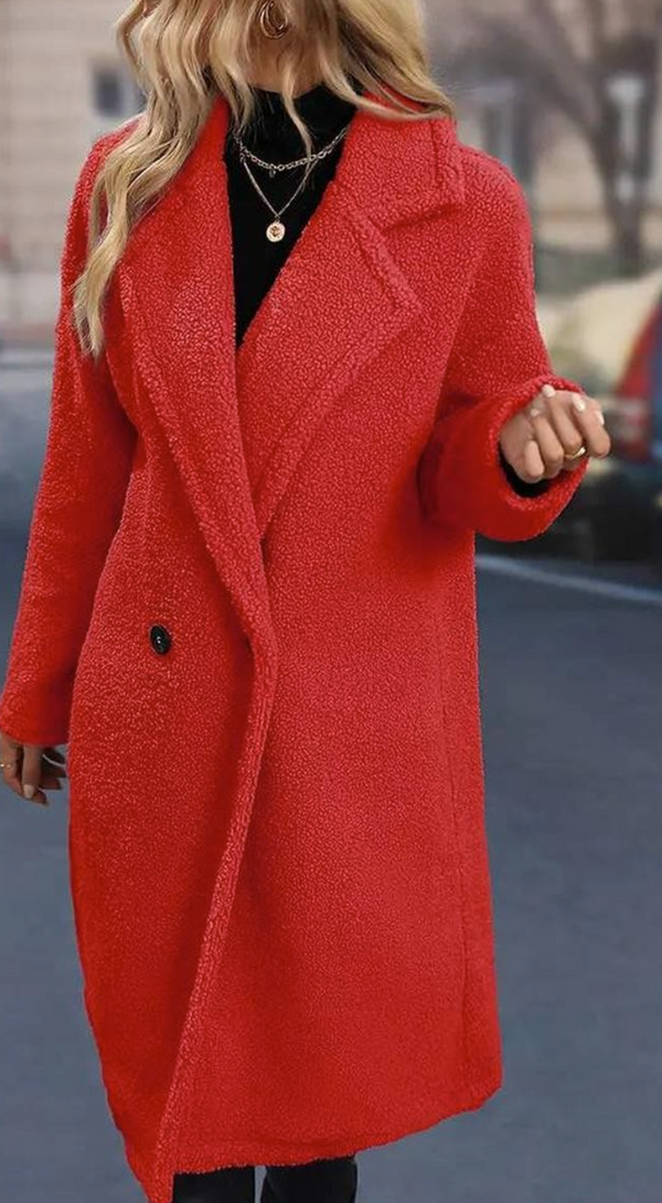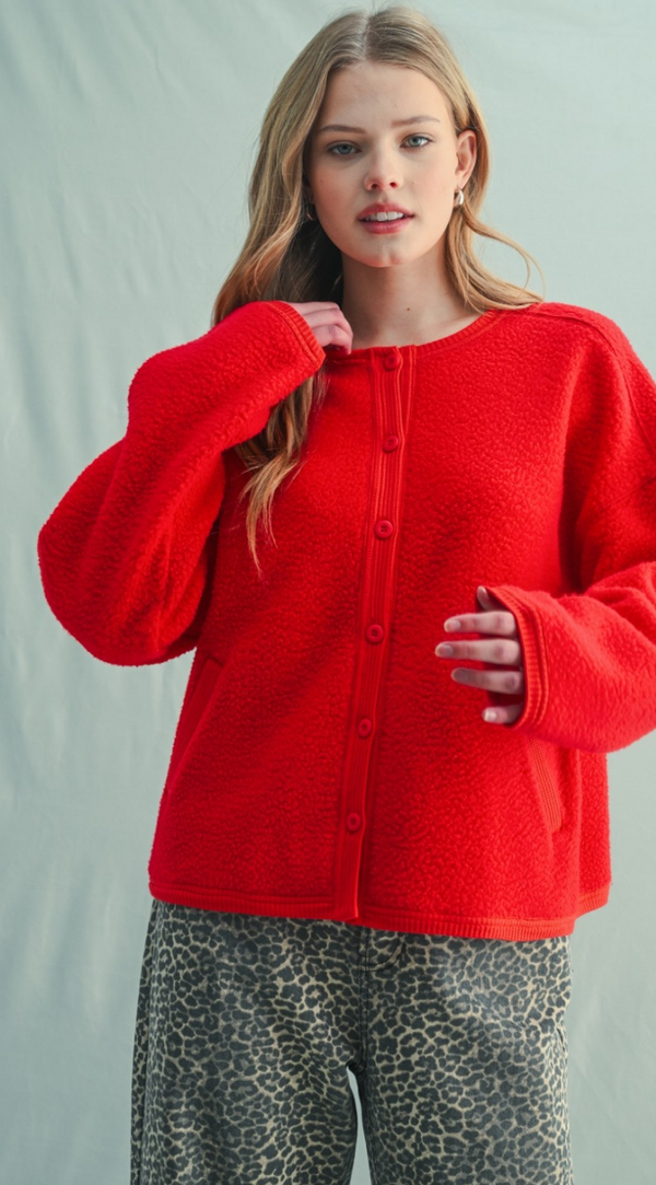 Deb Faux Sherpa Coat in Red- FINAL SALE