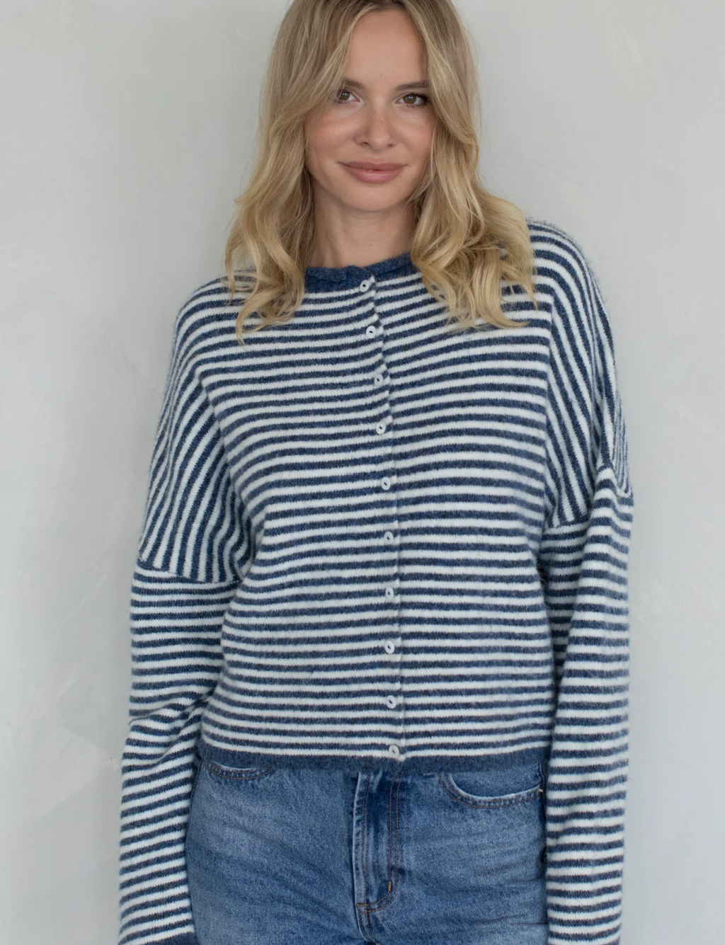 Maudie Mini Stripe Cardigan in Denim