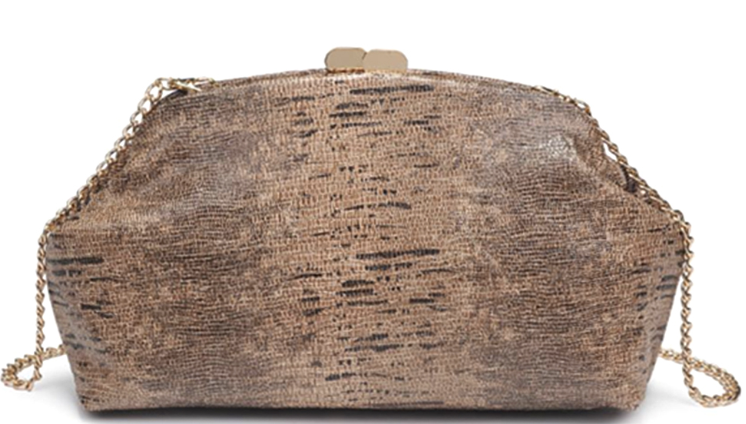 Camille Snake Print Clutch Bag in Brown