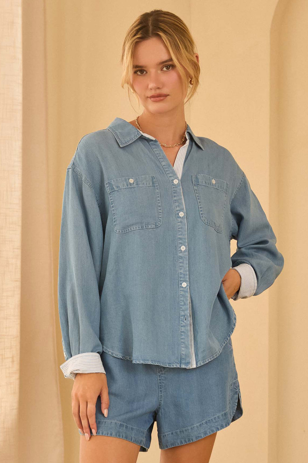 Elaina Washed Button-Up in Chambray