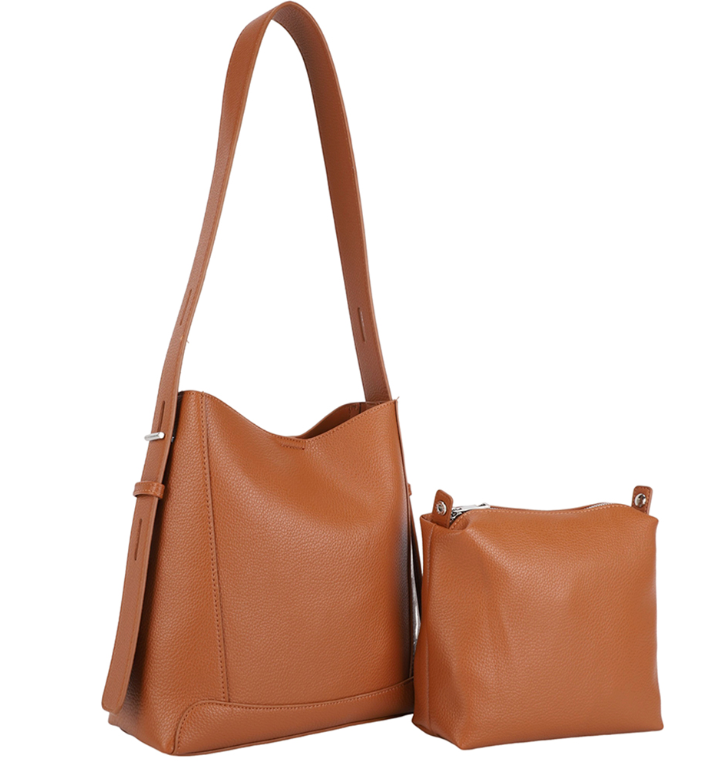 Haven Shoulder Bag with Zipper Pouch in Brown