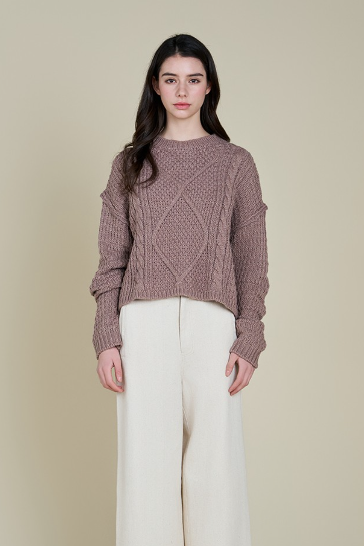 Markita Cropped Cable Knit Sweater in Dusty Orchid