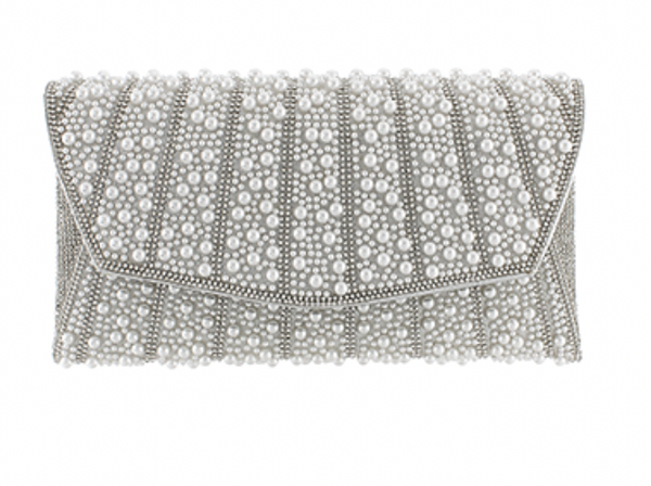 Tait Beaded Pearl and Crystal Clutch in Silver and Cream