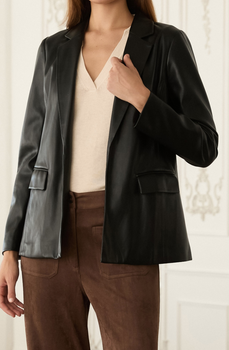 Hendricks Vegan Leather Blazer in Black