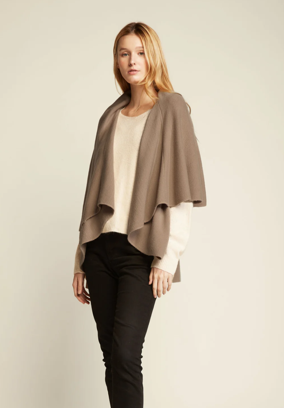 This layering piece has been a bestseller since COCO opened in 2017. Wear it one way and it's scarf-like in front and covers long over your bottom. Flip it around the other way and it's shorter, with a dreamy drape down low, covering your shoulders and arms!