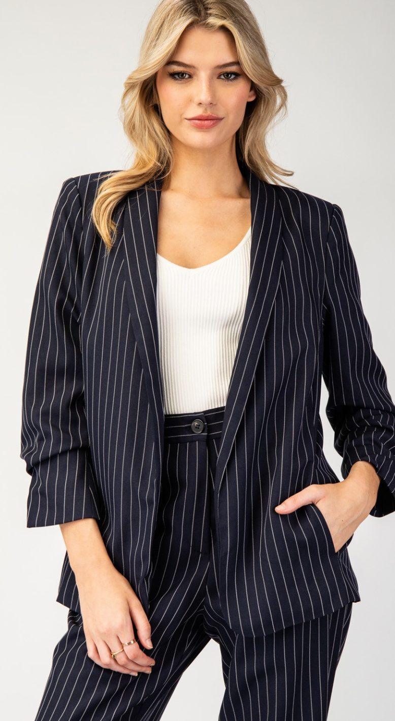 Ruthie Pinstripe Blazer in Navy- FINAL SALE