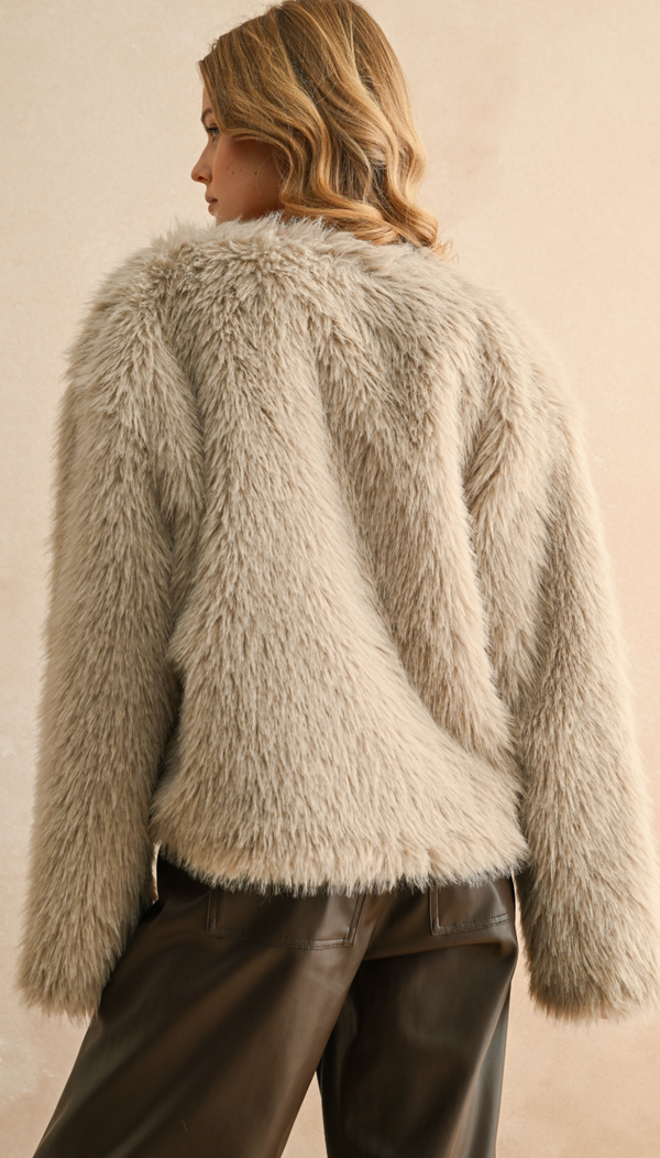 Vera Faux Suede Coat with Fringe Detail in Cream- FINAL SALE