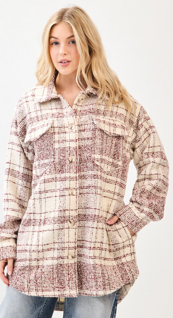 Magnolia Plaid Shacket in Burgundy and Cream- FINAL SALE