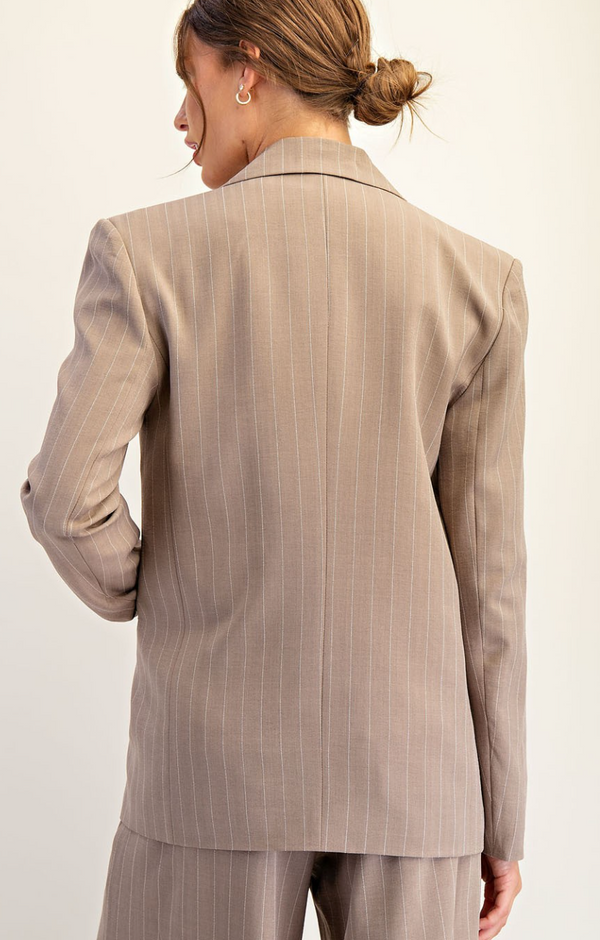 Samantha Pinstripe Double Breasted Blazer in Mocha- FINAL SALE