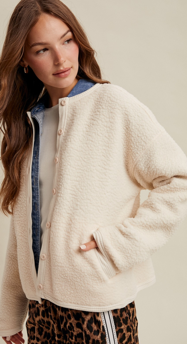 Billie Plaid Super Soft Fleece Jacket in Cream & Grey- FINAL SALE
