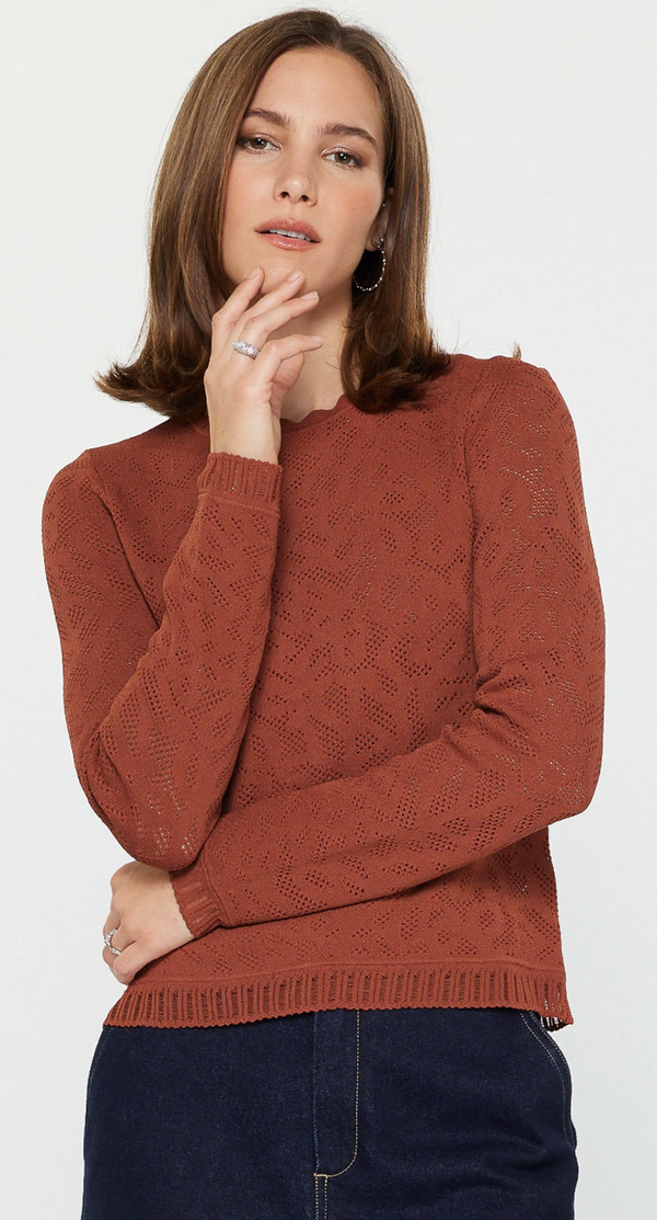 Adalyn Scalloped Neck Sweater in Rust