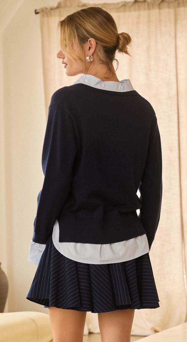 Blair Mixed Media Layered Sweater in Navy