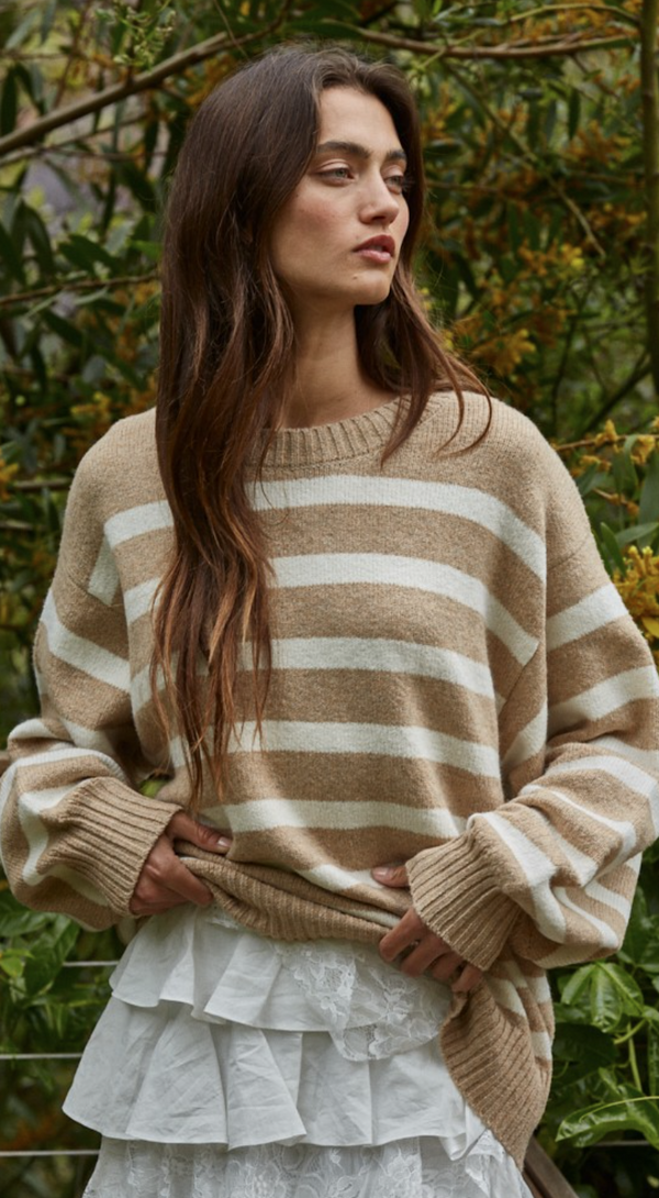 Davis Oversized Striped Sweater in Ivory and Mocha