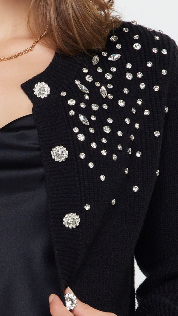Diana Rhinestone Embellished Cardigan in Black