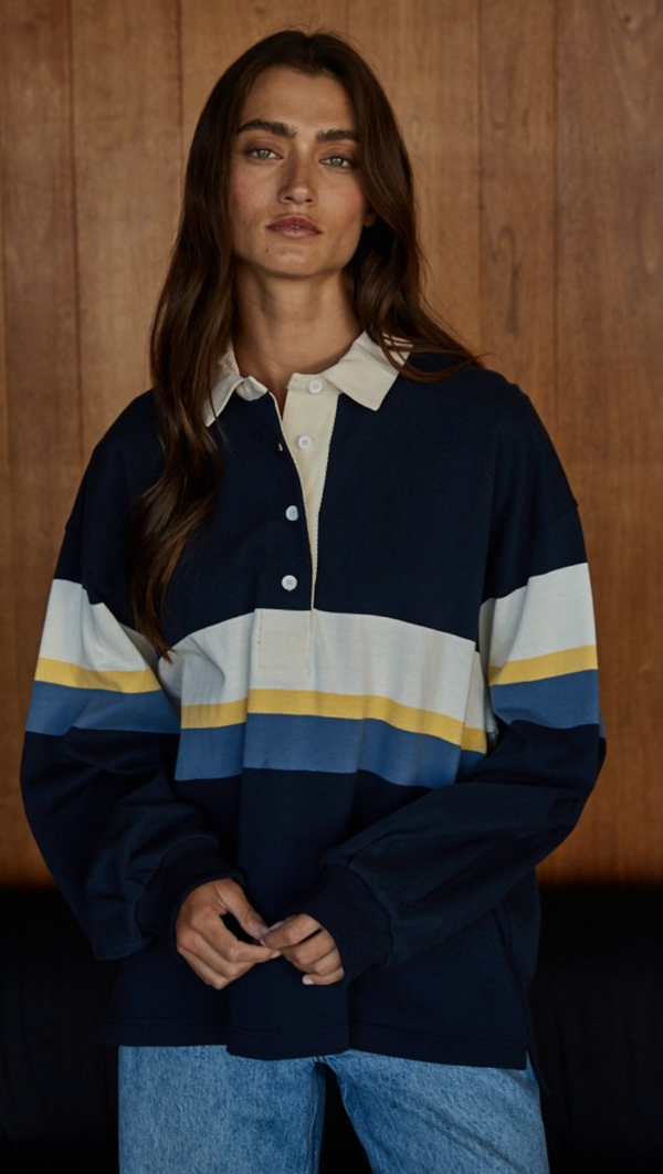Elijah Cotton Rugby Shirt in Navy