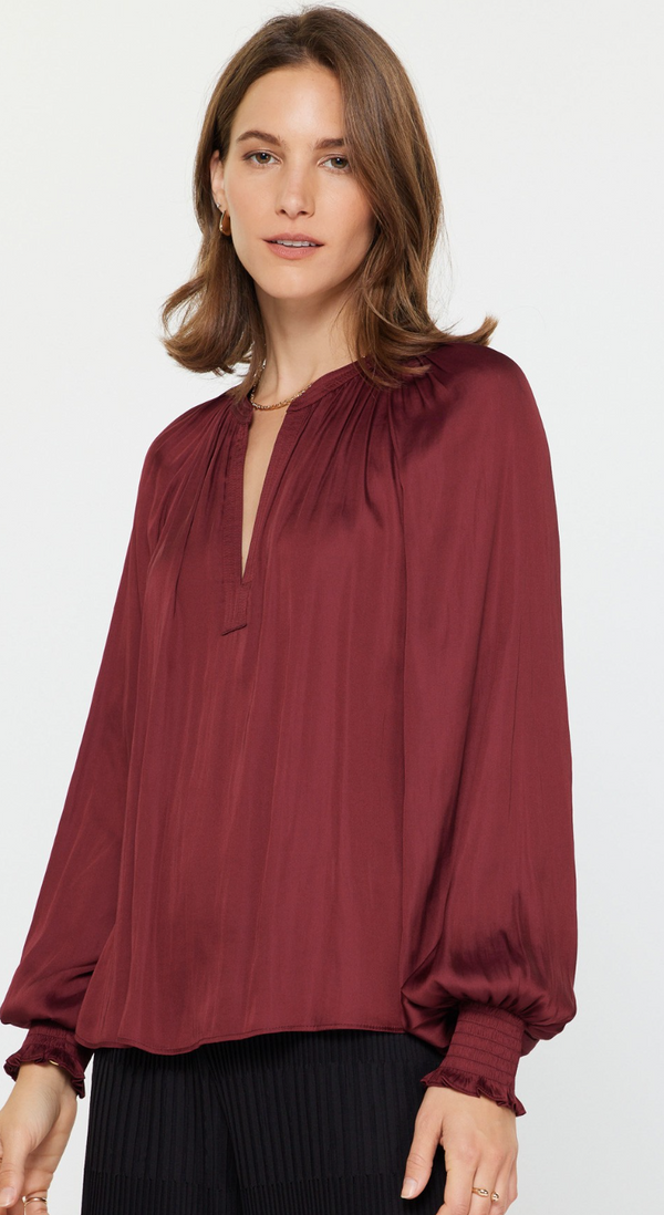 Elsie Pleated Blouse in Burgundy
