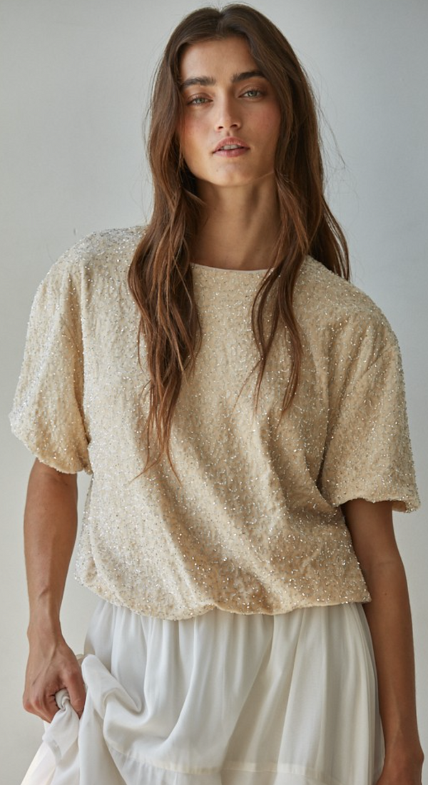 Fleur Sequin Bubble Hem Top in Natural